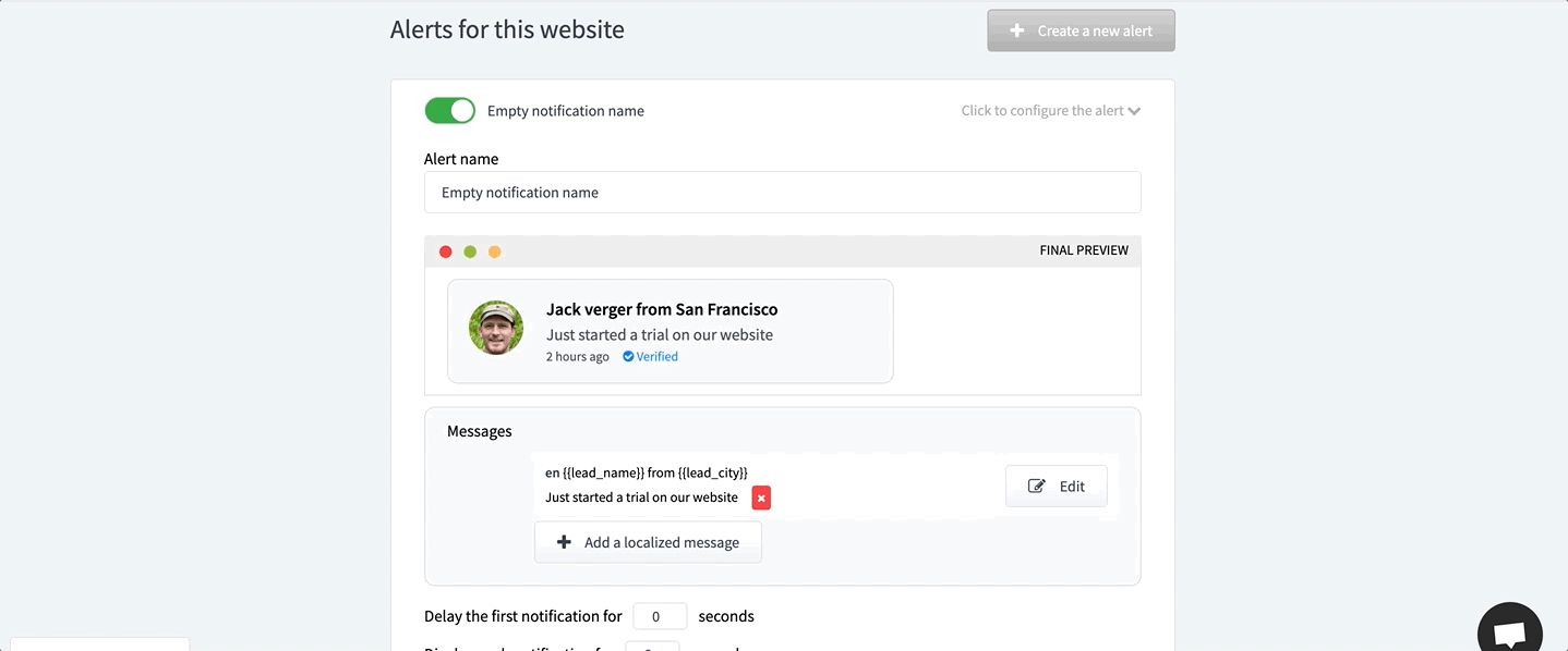 Gere e exiba notificações em seu website instalando um widget para mostrar mensagens aleatórias aos seus visitantes. Isso aumentará suas vendas e credibilidade.