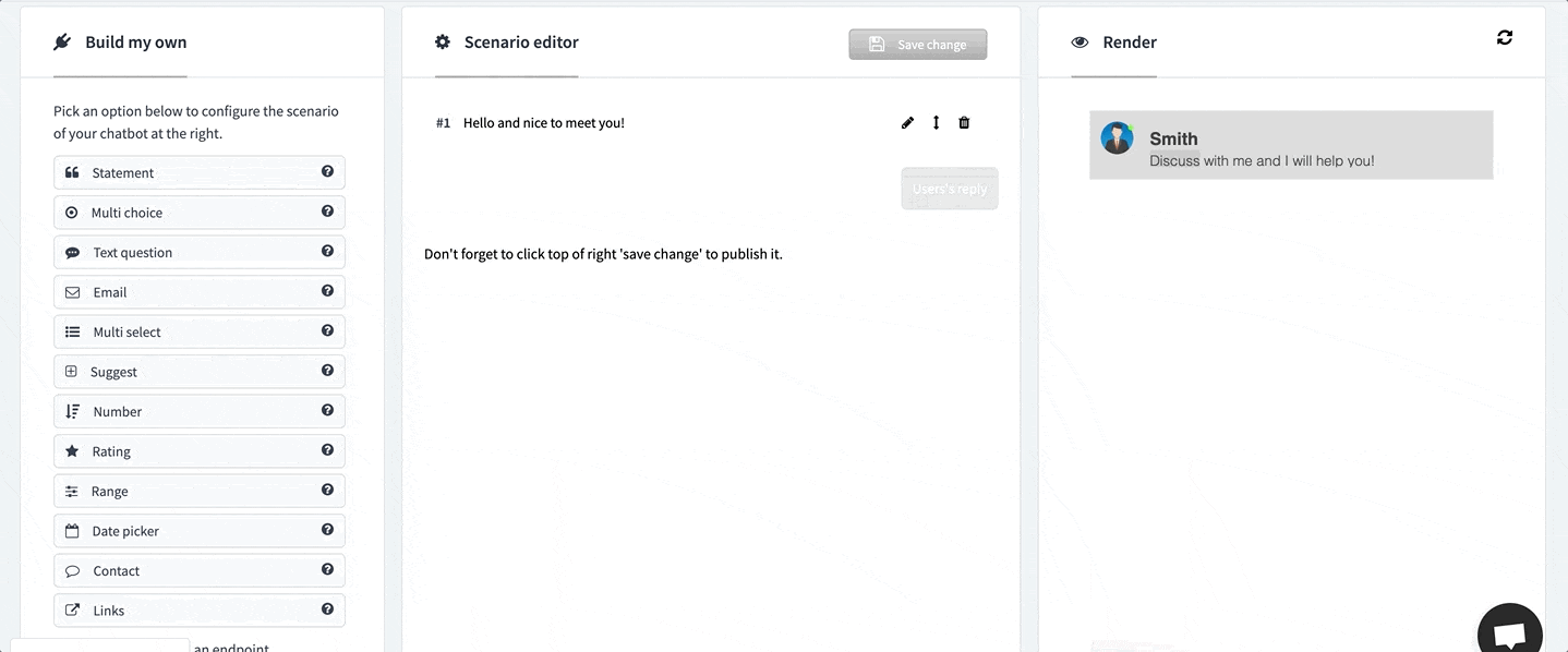 Adicione um chatbot a qualquer landing page ou site em segundos, acompanhe as conversas e melhore com base nos dados de comportamento.